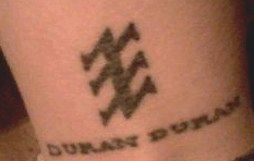 In her own words.... I have two dd tattoos. The first one I got on December 7th, 2005, three days after they left my country (Argentina) and three days after the best show ever. It was a promise I made to myself and I'm always good with me ;). In that opportunity, I had the chance to meet Roger, Nick and John in person. Simon too, but well... he couldn't gave me an autograph back then. And Andy, the love of my life, heard me screaming his name and smiled to me... better than anything else. (Yet, Andy, you must know, I'm waiting for my second chance with you!). I met incredible people at that show, duranies that are still friends of mine. Well, this was my first tattoo (ever), it's on my left ankle and it's the "Seven..." symbol with the name of the band using the typography from "Rio".